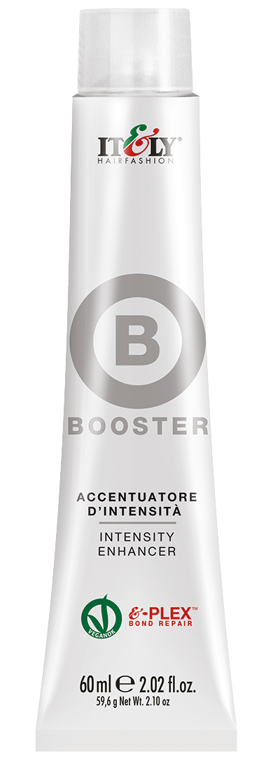 Booster sind Farbtöne mit sehr hoher Reflexionsintensität, die sich zum Hervorheben oder Reduzieren der Farbintensität eignen. Sie wurden speziell zur Modifikation von Itely Colorly Optimus Permanente Haarfarbe und Itely Aquarely Permanente Haarfarbe entwickelt und werden je nach gewünschtem Endergebnis in proportionalen Mengen mit anderen Farbtönen gemischt oder als Korrektoren gemäß den Farbregeln auf dem Farbkreis eingesetzt. Veganes Produkt.