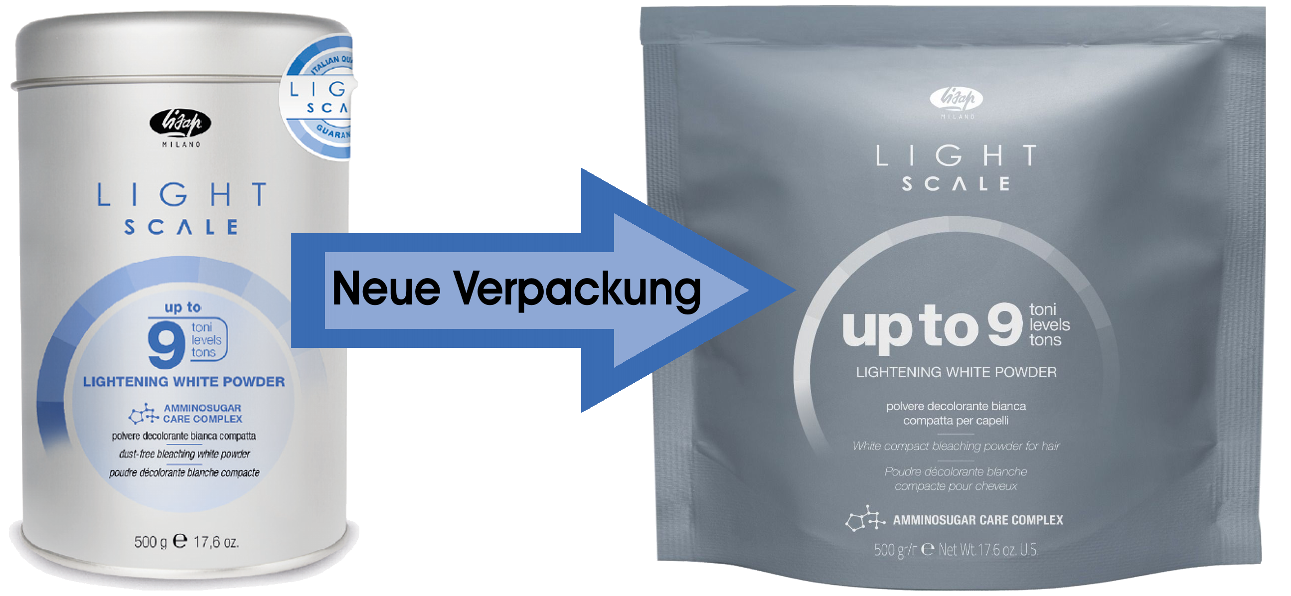Neue Verpackung: Lisap Light Scale Up To 9 - Weißes Blondierpulver - 500 g