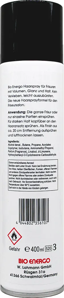 Bio Energo Care Masters Haarspray verleiht Frisuren Volumen, Glanz und Halt. Die neue Haarsprayformel für den Friseursalon. Kein Verkleben, leicht auszubürsten.