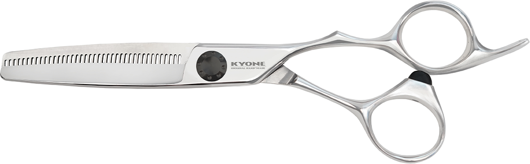 Die Zähne der Modellierschere sind in einer Form gekrümmt, die zusammen mit der Schneide einen geraden Schnitt sichern und das wegrutschen der Haare verhindern. Zur weiteren Perfektionierung des Schnitts ist jeder Zahn an der Spitze mit einer Laser-geschliffenen Prismen-Zahnung versehen.
